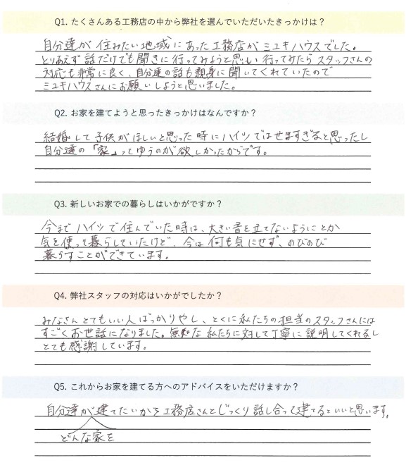 自分たちの話も親身に聞いてくれていたのでミユキハウスさんにお願いしようと思いました。